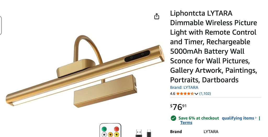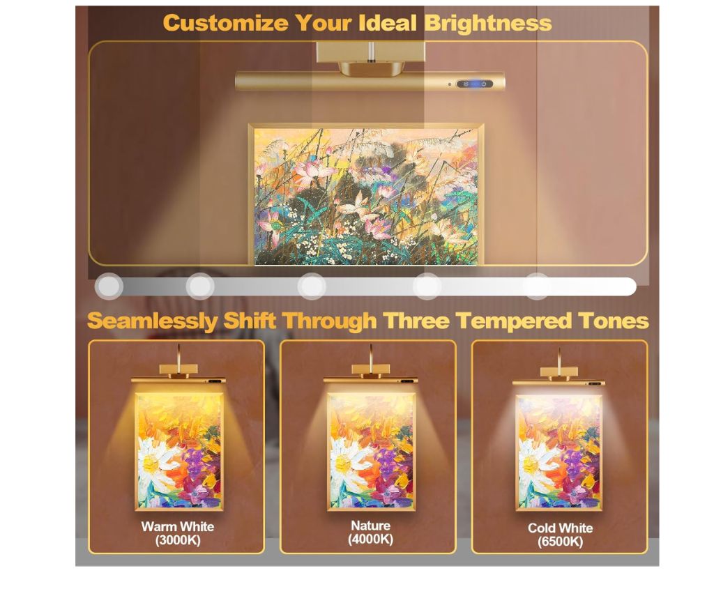 Liphontcta LYTARA Dimmable Wireless Picture Light with Remote Control and Timer, Rechargeable 5000mAh Battery Wall Sconce for Wall Pictures, Gallery Artwork, Paintings, Portraits, Dartboards